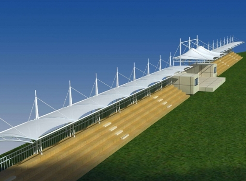 5.抵御天氣的影響:舞臺(tái)膜屋面的一個(gè)重要作用就是抵御各種天氣變化(如日曬、雨淋、風(fēng)雪等)對其內(nèi)部空間的影響,保持建筑物內(nèi)部的舒適性。選擇膜面的形態(tài)和材料時(shí)要考慮到所有可能的天氣狀況,并盡可能利用建筑本身等被動(dòng)方法來減少能量的消耗。