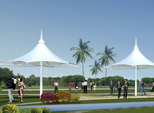 在城市公園中,景觀膜結構常被用于搭建涼亭、長廊和展覽區(qū)。