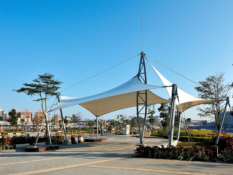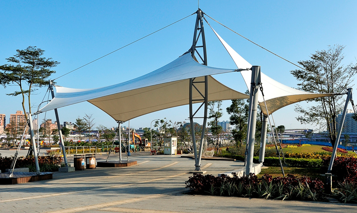 膜結(jié)構(gòu)景觀棚輕巧、別致的造型在停車場及候車廳的建設(shè)中起到重要作用,除了滿足防風(fēng)雨、防日曬等基本功能外,并有較好的標(biāo)識招攬效果,展現(xiàn)了人們個性化的一面。如果你想有陰影覆蓋或擴大你的建筑特征,在短時間內(nèi)改變,除了木頭,石頭,金屬和玻璃材料的使用,另一種合適的材料是膜結(jié)構(gòu)景觀棚)。用PVC和PTFE膜,因此他們可以以低成本設(shè)計場館的屋頂結(jié)構(gòu)所需的形狀,這些材料可以被成功地用于幾乎所有的景觀或建筑環(huán)境,而且不受任何天氣條件的影響。膜結(jié)構(gòu)景觀棚的其他優(yōu)點是制造和安裝時間短,便宜的價格,高,拉伸和橫向的優(yōu)勢。