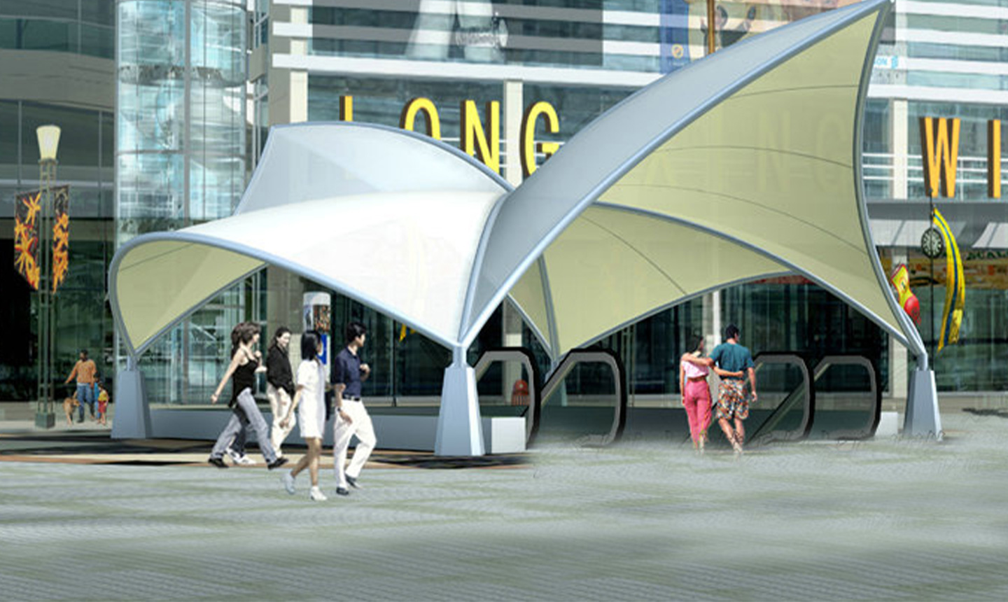 膜結(jié)構(gòu)工程的所有加工生產(chǎn)均在工廠完成,可減少現(xiàn)場施工時(shí)間,避免施工交叉,工期比傳統(tǒng)施工工期短。