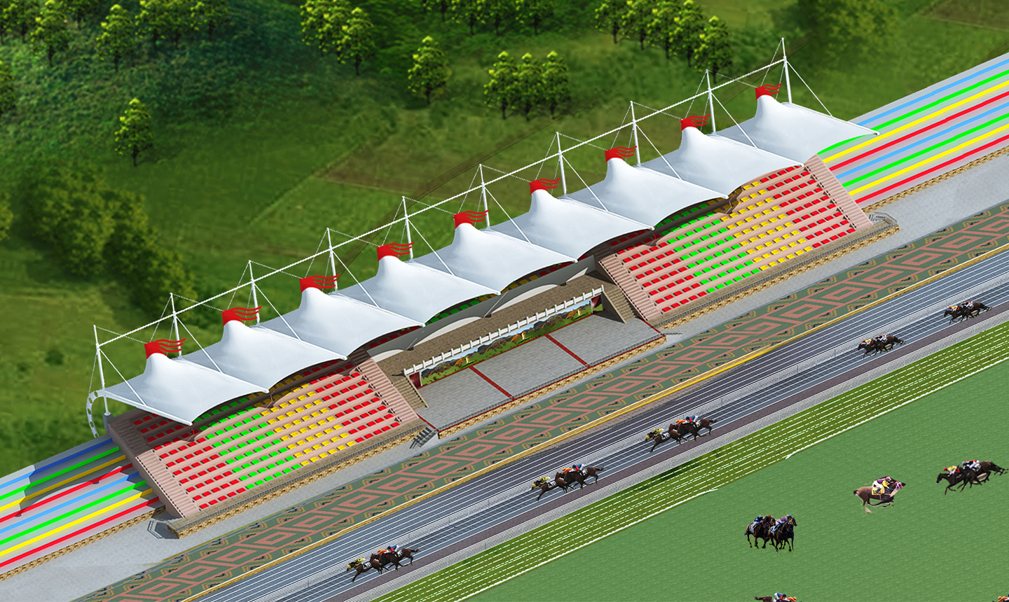 1、膜結構體育看臺在體育場上發(fā)揮了很大的作用,體育看臺膜結構在施工的時候,我們要注意角度和力度搭配,這種建筑物并不需要太多的設計元素,只需要符合體育場館的要求就可以了,所以設計上無需太夸張。建筑材料一定要保證結實耐用,因為這樣的場館需要用上幾十年才會翻新或者改造一次,不會經常去改動布局,就不用考慮太多的特色因素,裝飾物越少越安全。