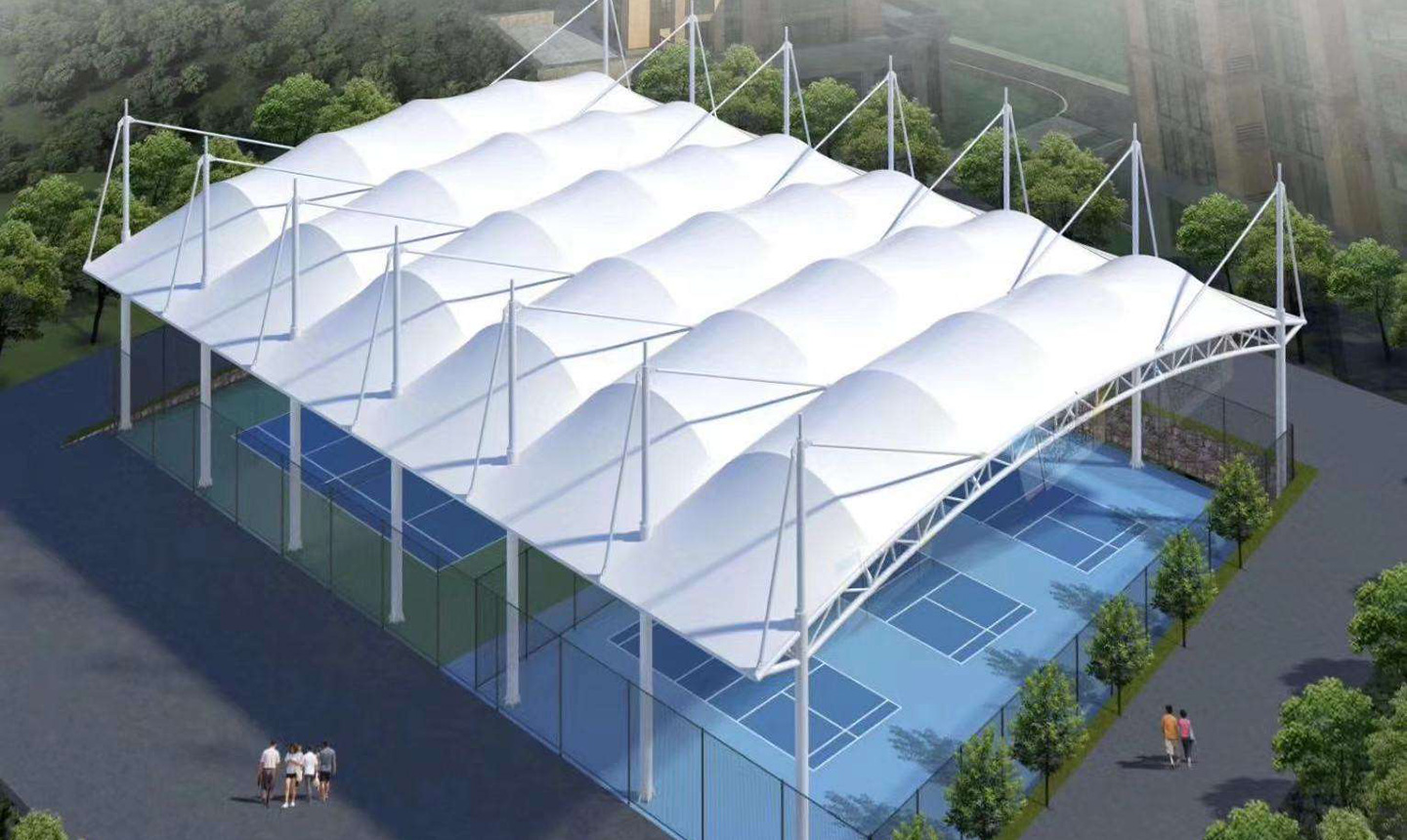 一、對(duì)于場(chǎng)地要求低,基本上所有球場(chǎng)地都可以做膜結(jié)構(gòu)頂棚,相比混凝土結(jié)構(gòu)的風(fēng)雨球館,施工周期短,造價(jià)低。
