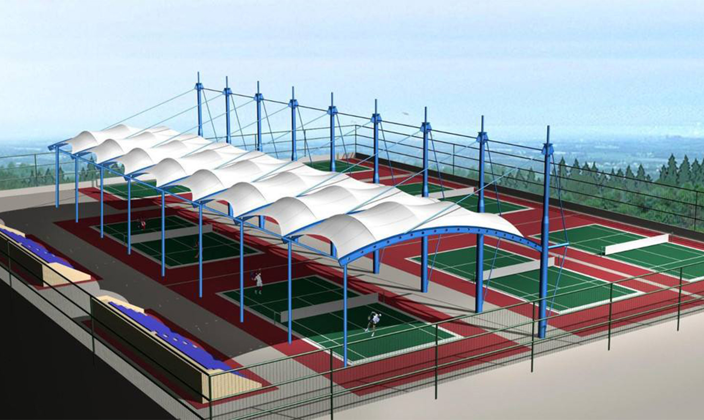 一、對于場地要求低,基本上所有球場地都可以做膜結構頂棚,相比混凝土結構的風雨球館,施工周期短,造價低。