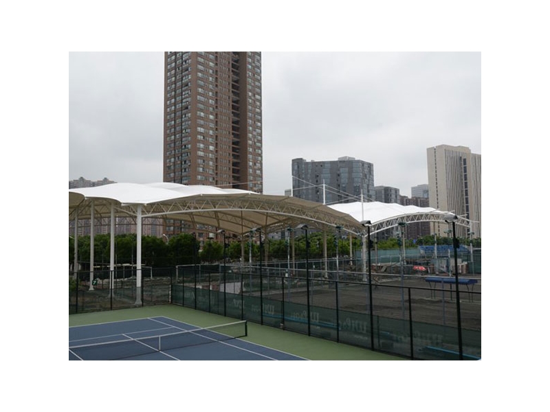 PTFE膜材的最大特點是強度高、耐久性好、防火難燃、自潔性好,不受紫外線影響,使用壽命在25年以上。具有高透光率,透光率為13%, 對熱能反射率73%,熱吸收量很少。正是因為這種劃時代的膜材料的發(fā)明,使膜結構建筑成為現(xiàn)代化的永久性建筑。