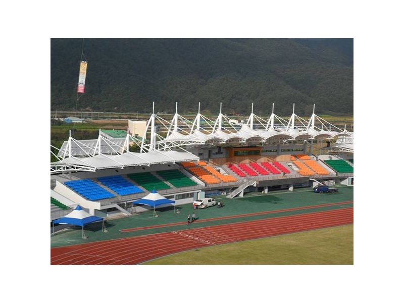 PTFE膜材的最大特點(diǎn)是強(qiáng)度高、耐久性好、防火難燃、自潔性好,不受紫外線影響,使用壽命在25年以上。具有高透光率,透光率為13%, 對(duì)熱能反射率73%,熱吸收量很少。正是因?yàn)檫@種劃時(shí)代的膜材料的發(fā)明,使膜結(jié)構(gòu)建筑成為現(xiàn)代化的永久性建筑。
