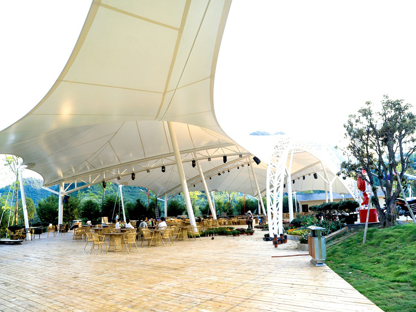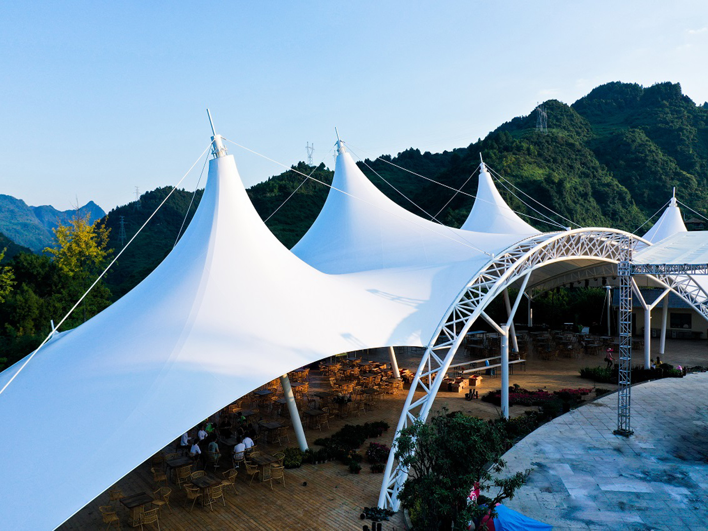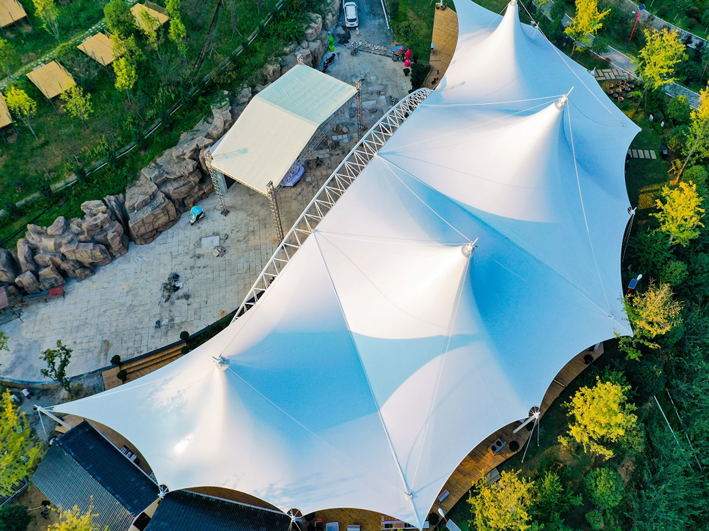 要注意膜材在不同受力情況的延展性,嚴(yán)禁過度張拉膜材。
