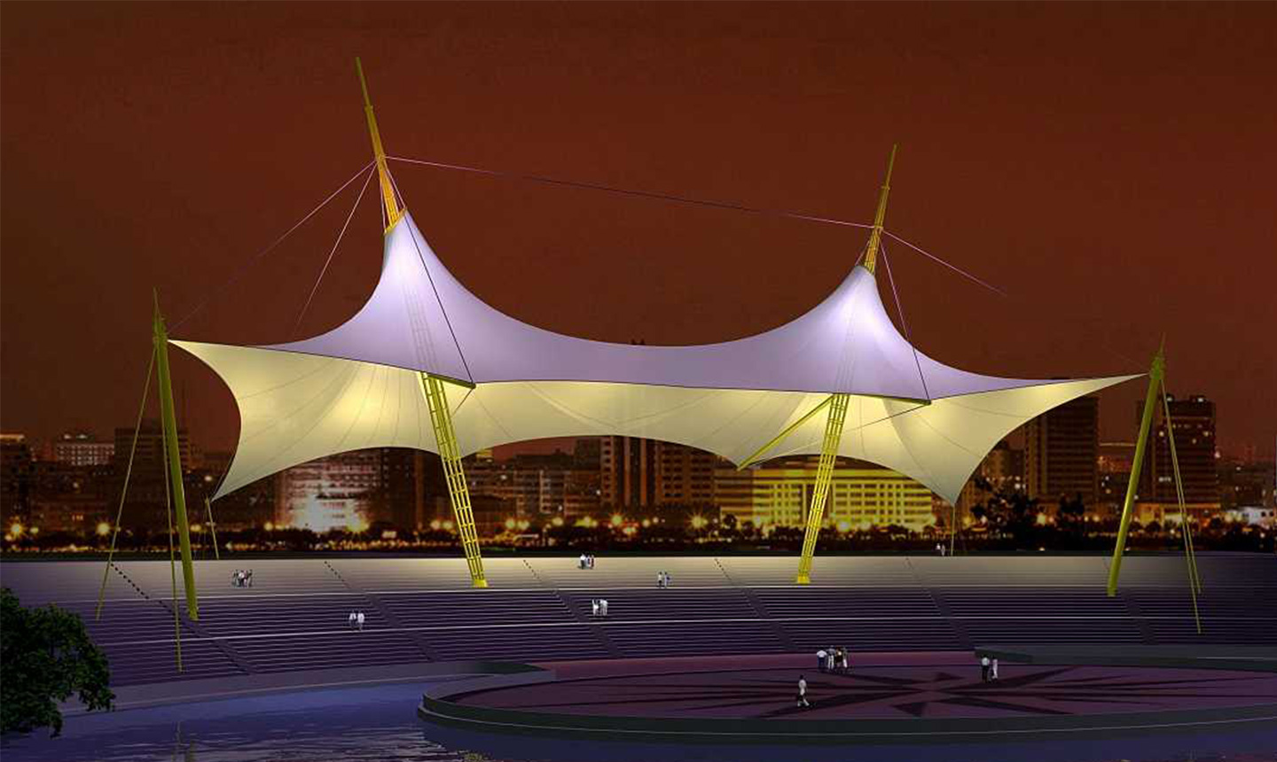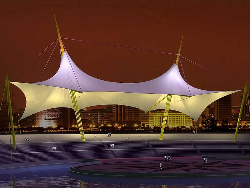 膜結(jié)構(gòu)由于其材料重量輕、支撐方式靈活的特點使其形狀變化多端,使設(shè)計者能夠充分發(fā)揮空間想象。大部分膜結(jié)構(gòu)工程的造型是非?;顫娖恋?,膜結(jié)構(gòu)工程不但打破了傳統(tǒng)建筑形式的沉悶,而且非常具有張力和雕塑感,能展現(xiàn)建筑形式的現(xiàn)代氣息,與傳統(tǒng)建筑的多線造型相比,膜結(jié)構(gòu)工程建筑以其優(yōu)美的曲線造型吸引人,與周邊建筑相輔相成的同時也讓人眼前一亮。特別是大型地標利用奇特的膜結(jié)構(gòu)造型營造夢幻般的夜間景觀效果,增加其認知度和商業(yè)效果。