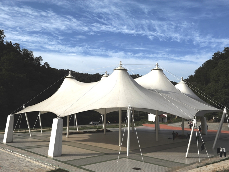 所有膜結(jié)構(gòu)工程采用的膜材料均為合成材料,具有非常優(yōu)異的阻燃性,且在高溫下不會熔化,不會產(chǎn)生有毒氣體,滿足了防火要求,膜結(jié)構(gòu)重量輕,結(jié)構(gòu)支撐靈活,具有很大的靈活性,可以抵消較強(qiáng)的側(cè)向荷載,因此其抗震性能非常好。