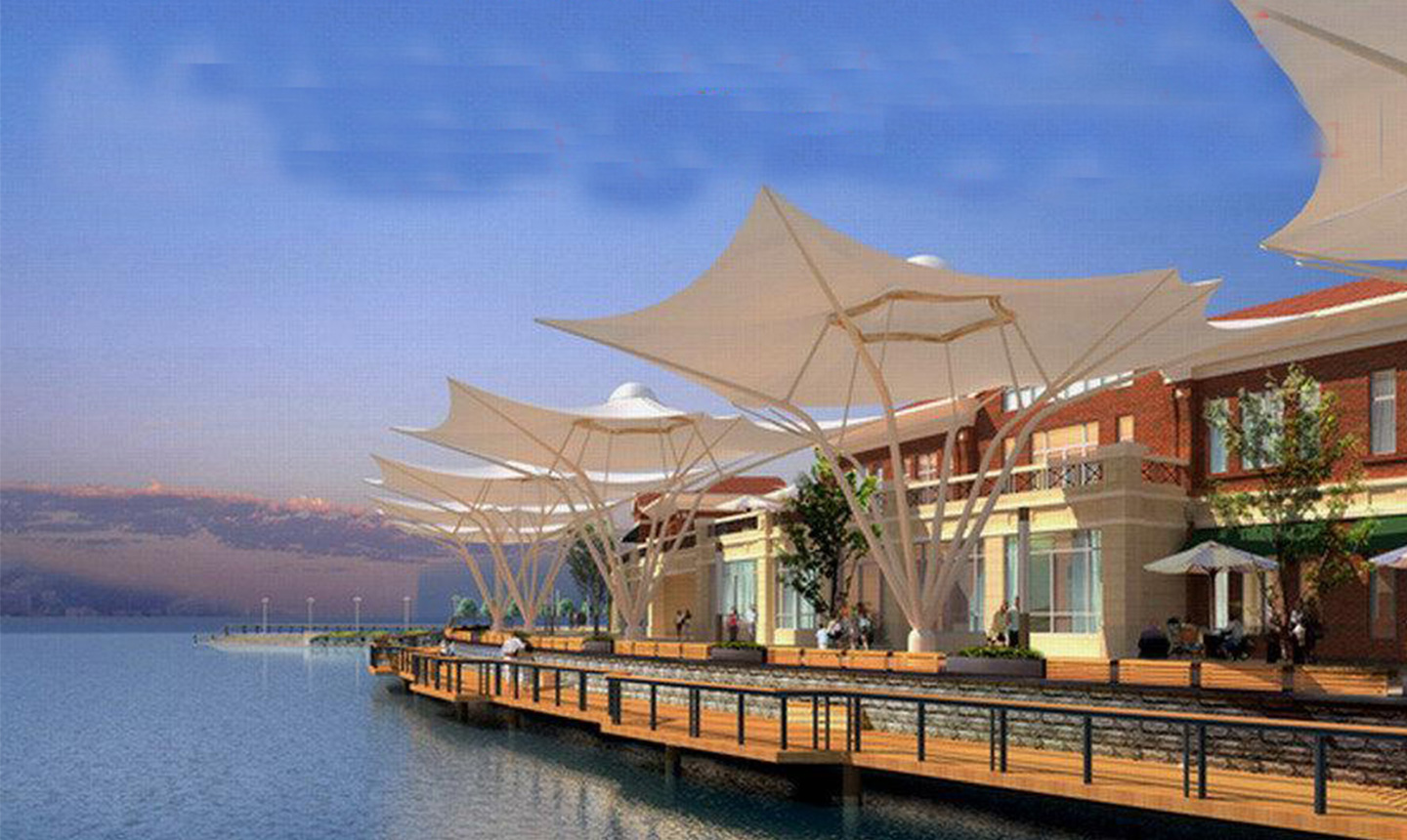 膜結構景觀棚輕巧、別致的造型在停車場及候車廳的建設中起到重要作用,除了滿足防風雨、防日曬等基本功能外,并有較好的標識招攬效果,展現(xiàn)了人們個性化的一面。如果你想有陰影覆蓋或擴大你的建筑特征,在短時間內(nèi)改變,除了木頭,石頭,金屬和玻璃材料的使用,另一種合適的材料是膜結構景觀棚)。用PVC和PTFE膜,因此他們可以以低成本設計場館的屋頂結構所需的形狀,這些材料可以被成功地用于幾乎所有的景觀或建筑環(huán)境,而且不受任何天氣條件的影響。膜結構景觀棚的其他優(yōu)點是制造和安裝時間短,便宜的價格,高,拉伸和橫向的優(yōu)勢。